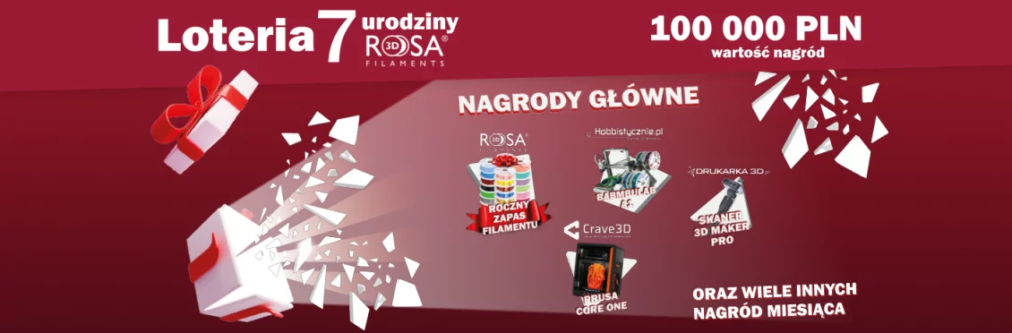 - 70x bon upominkowy na zakup filamentu o wartości 100 zł brutto,