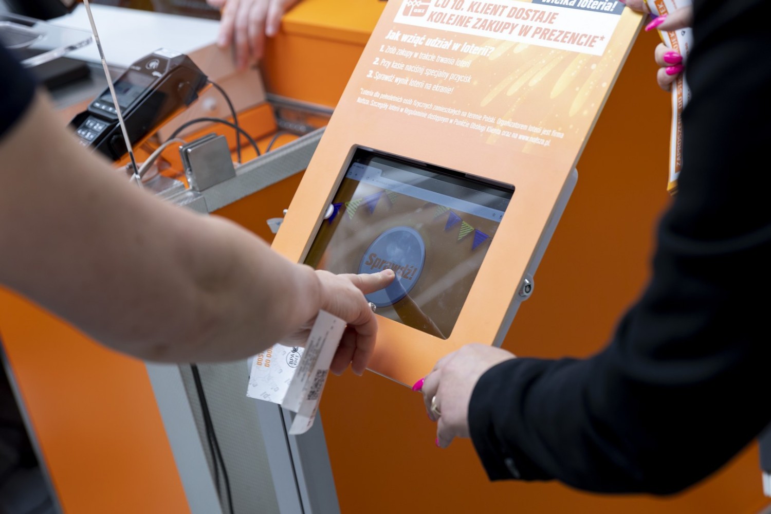 Aby sprawdzić, która transakcja jest dziesiąta w kasach umieszczono przyciski. Co dziesiąte przyciśnięcie oznacza wygraną. Wynik loterii wyświetli się natychmiast: na przycisku, na kasie za pomocą świateł oraz kogutów, na telebimie, a przez głośniki rozlegnie się dżingiel z numerem kasy. Wszyscy klienci spoglądają na szczęśliwego zwycięzcę zakupów za darmo.